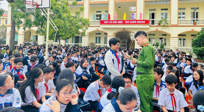 Học sinh trường THCS Kiến Hưng tham gia tương tác, đặt câu hỏi với cán bộ công an