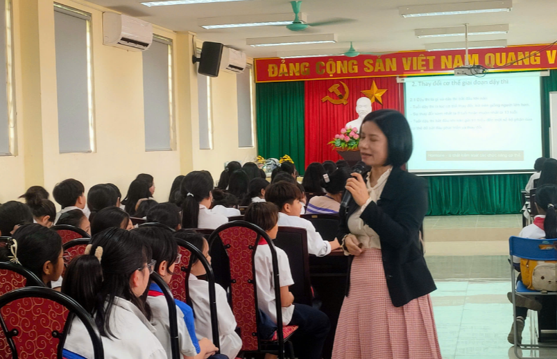 Cô giáo Nguyễn Thúy Vinh - Phó hiệu trưởng nhà trường đại diện phát biểu: Thay mặt nhà trường và toàn thể học sinh, tôi xin trân trọng cảm ơn Bác sĩ CKII, ThS. Phạm Thị Vạn Xuân đã đến và chia sẻ những kiến thức vô cùng quý báu trong chuyên đề “Giáo dục giới tính cho học sinh”. Buổi nói chuyện không chỉ mang lại kiến thức cần thiết, đúng đắn và khoa học, mà còn góp phần giúp các em học sinh nâng cao ý thức trong việc chăm sóc và bảo vệ bản thân. Kính chúc bác sĩ luôn dồi dào sức khỏe, hạnh phúc và tiếp tục lan tỏa những giá trị tích cực đến cộng đồng.