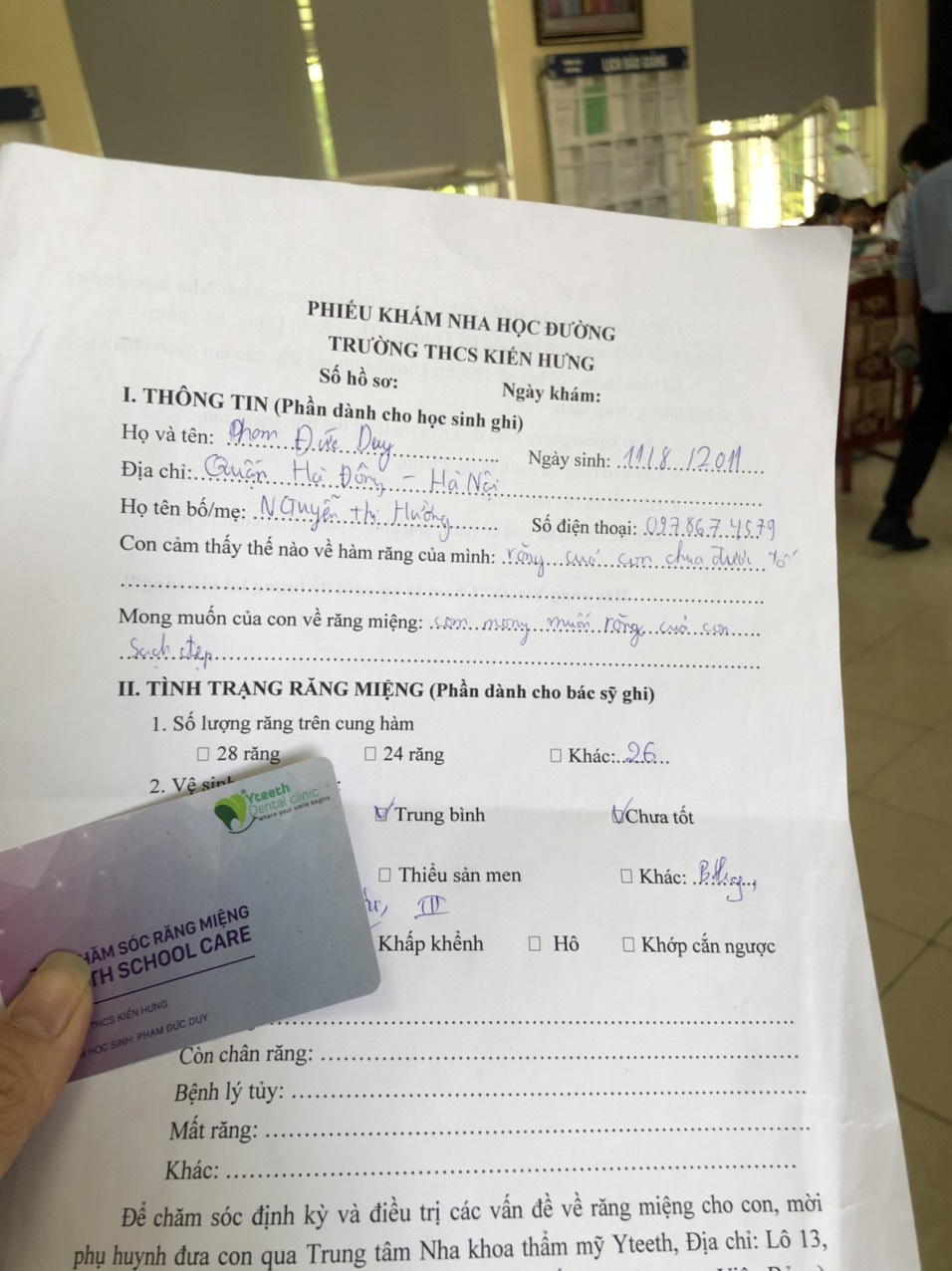 Thẻ và phiếu khám các bạn học sinh được nhận sau khi khám !