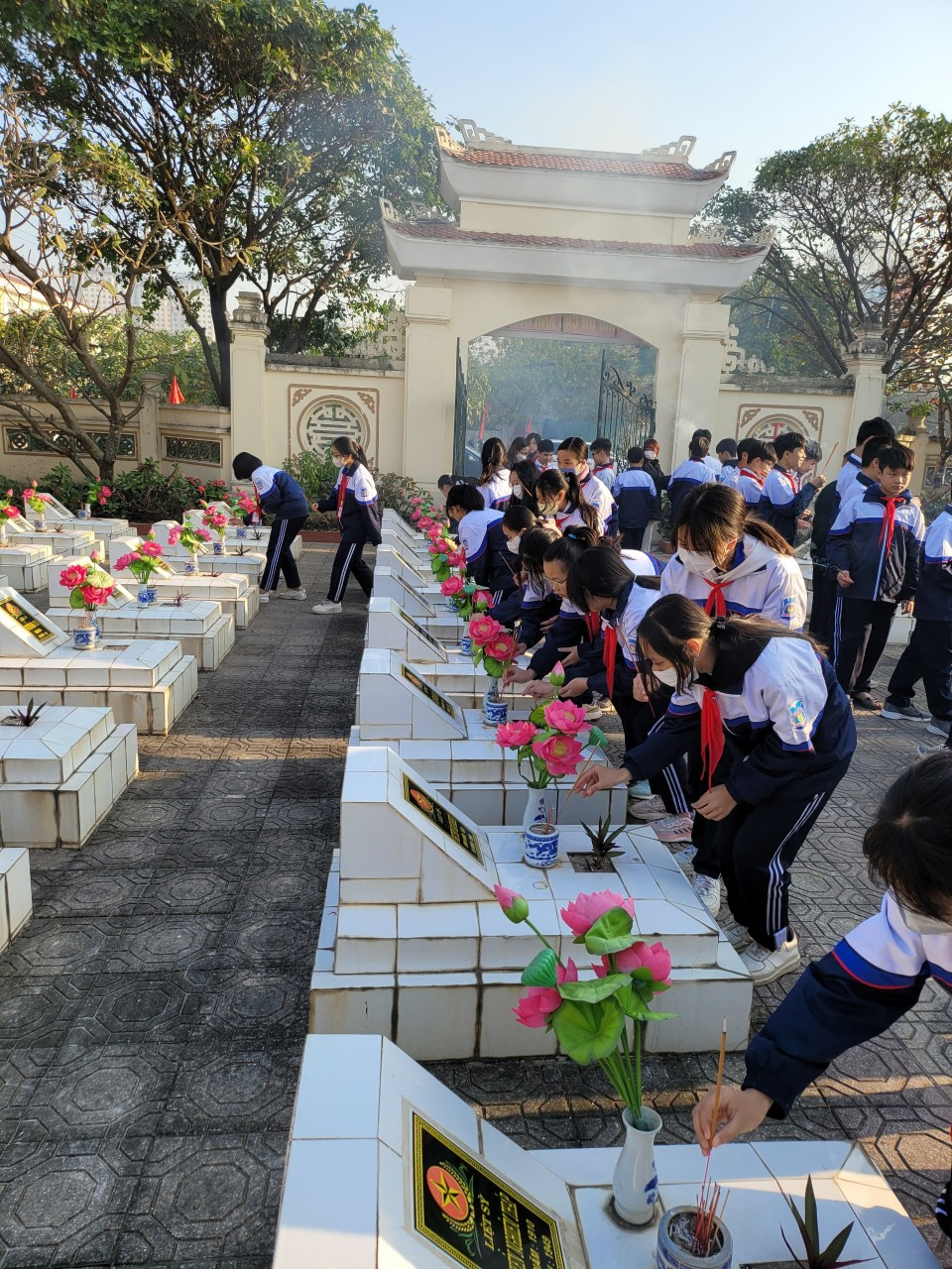 Thầy và trò trường THCS Kiến Hưng thắp hương tưởng niệm các anh hùng liệt sĩ