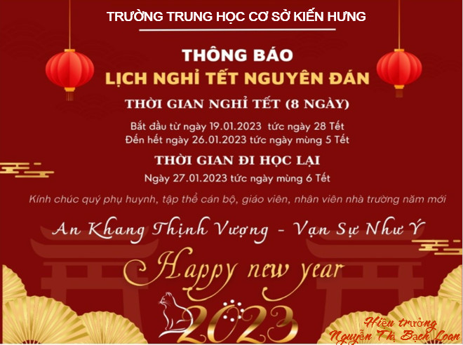 Lịch nghỉ Tết Quý Mão 2023 - Trường THCS Kiến Hưng