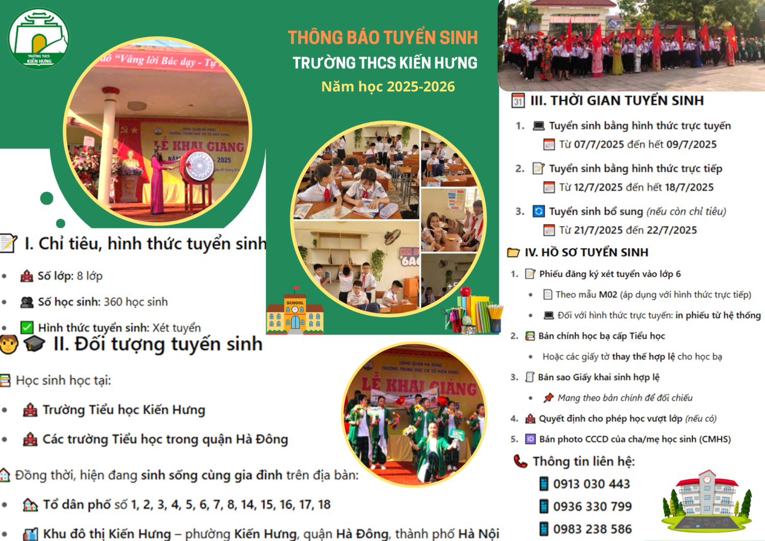 Kính gửi quý CMHS thông báo tuyển sinh của trường THCS Kiến Hưng năm học 2025-2026