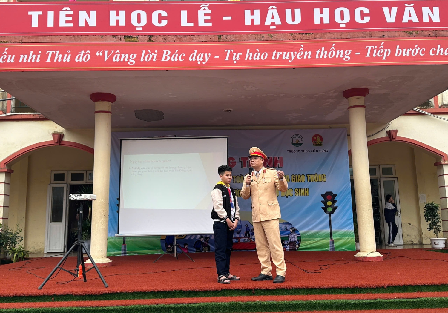TRƯỜNG THCS KIẾN HƯNG TỔ CHỨC TUYÊN TRUYỀN, PHỔ BIẾN PHÁP LUẬT VỀ TRẬT TỰ AN TOÀN GIAO THÔNG CHO HỌC SINH