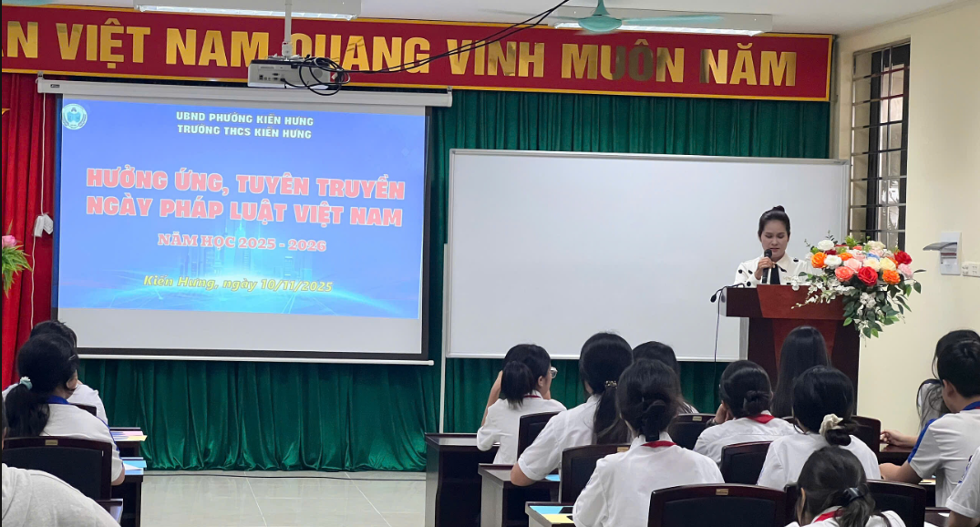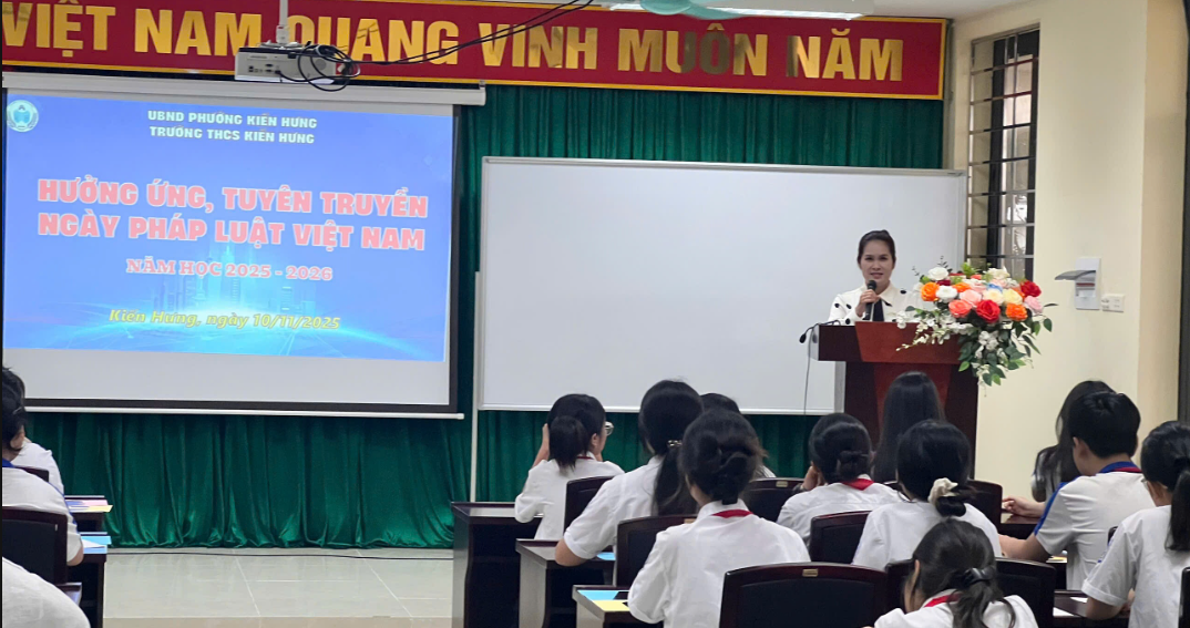 TRƯỜNG THCS KIẾN HƯNG TỔ CHỨC HOẠT ĐỘNG TUYÊN TRUYỀN NGÀY PHÁP LUẬT VIỆT NAM