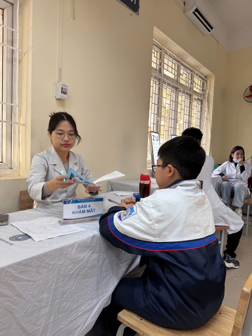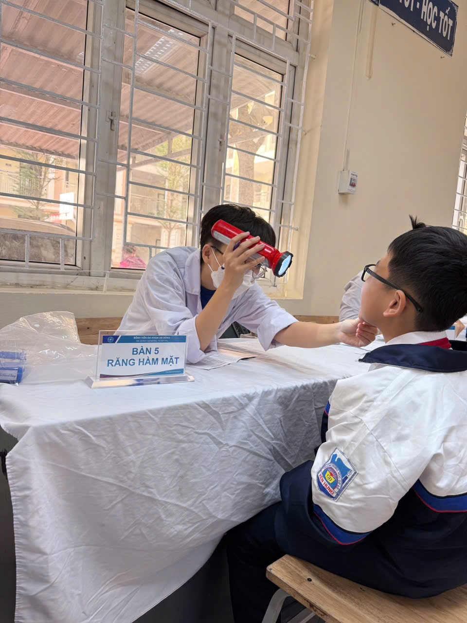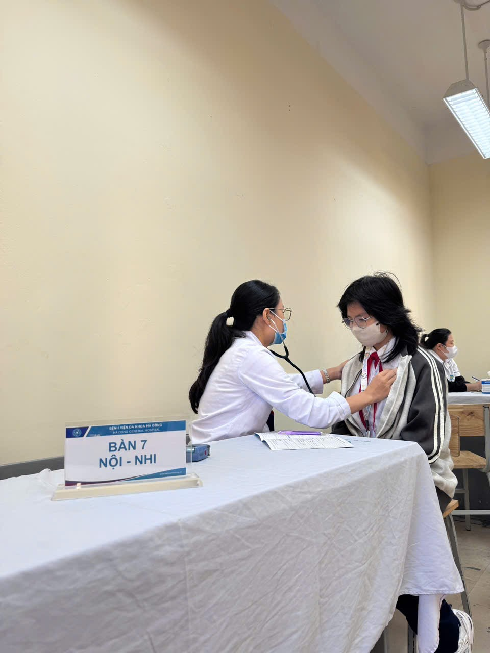 - Các Y - Bác sĩ khám và dặn dò học sinh giữ gìn sức khỏe trước nguy cơ mắc bệnh hô hấp khi thời tiết chuyển mùa - - Cán bộ Y tế của trường THCS Kiến Hưng và BV Đa Khoa Hà Đông đã kịp thời thăm khám, cập nhật kết quả chính xác về thể trạng và sức khỏe của mỗi học sinh nhà trường, từ đó tư vấn với gia đình và các em về chế độ dinh dưỡng, chế độ luyện tập sao cho các em có một sức khỏe tốt nhất để học tập đạt hiệu quả cao - Khám sức khỏe định kỳ là cách tốt nhất để bảo vệ sức khỏe, chất lượng cuộc sống của mỗi học sinh. Qua hoạt động này, cán bộ phụ trách Y tế nhà trường cùng các thầy cô có thể nắm rõ tình hình của từng học sinh và có biện pháp hỗ trợ, chăm sóc phù hợp. Đồng thời, sau khi có kết quả thăm khám, các thầy cô trong vai trò giáo viên chủ nhiệm sẽ có cơ sở để tiến hành trao đổi, phối hợp với từng phụ huynh học sinh để có biện pháp phối hợp giữa nhà trường và gia đình, tạo được sự an tâm của phụ huynh khi gửi con đến trường. Qua đợt khám bệnh này, phòng Y tế nhà trường cũng sẽ tiếp tục xây dựng, điều chỉnh kế hoạch nhằm làm tốt công tác y tế học đường trong năm học 2025 – 2026. Cảm ơn đội ngũ Bác sĩ của Bệnh viện Đa Khoa Hà Đông đã tận tình thăm khám, và các Thầy cô giáo, tổ văn phòng đã cùng phối hợp thực hiện để buổi khám sức khỏe đã diễn ra thành công tốt đẹp.