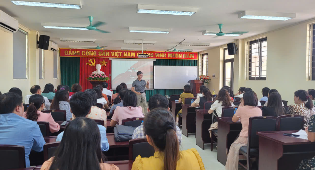 Nhận thấy được tầm quan trọng của ứng dụng STEM trong dạy học, thực hiện nhiệm vụ của năm học 2024-2025, Chiều ngày 22/10/2024, trường THCS Kiến Hưng tổ chức chuyên đề “STEM THẬT GẦN GŨI”do Thầy Hà Lam Sơn – Chuyên gia giáo dục Stem giảng dạy.