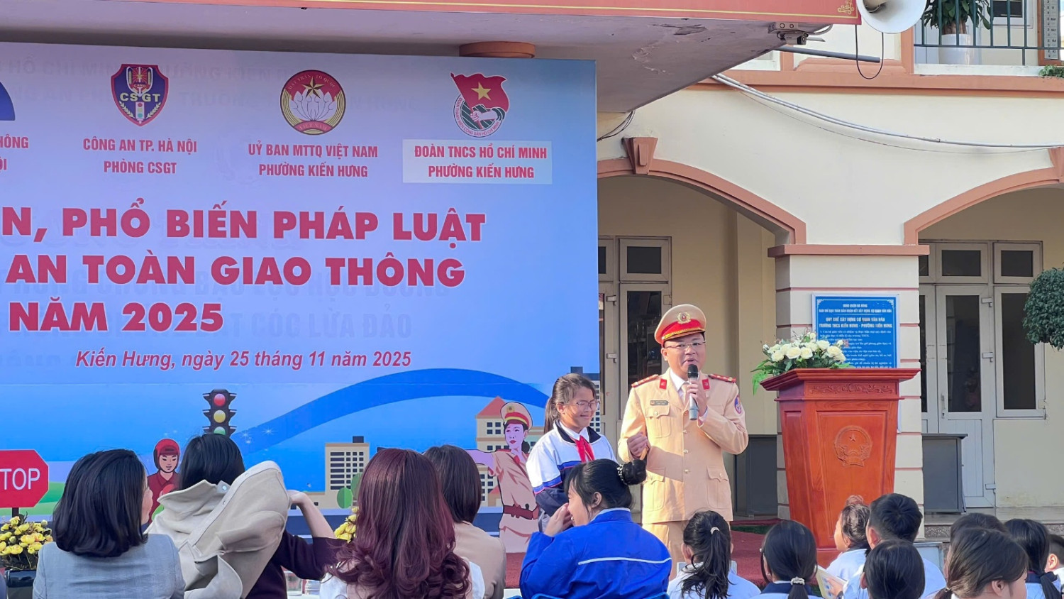 Sáng ngày 25/11/2025, Trường THCS Kiến Hưng phối hợp với Ban An toàn giao thông Thành phố Hà Nội, Phòng Cảnh sát giao thông - Công an Thành phố Hà Nội, Ủy ban MTTQ Việt Nam phường Kiến Hưng, và Đoàn TNCS Hồ Chí Minh phường Kiến Hưng tổ chức chương trình Tuyên truyền, phổ biến pháp luật về trật tự an toàn giao thông dành cho toàn thể học sinh nhà trường. Đây là hoạt động thiết thực nhằm nâng cao kỹ năng tham gia giao thông an toàn, hình thành thói quen văn minh và ý thức trách nhiệm cho các em học sinh THCS.