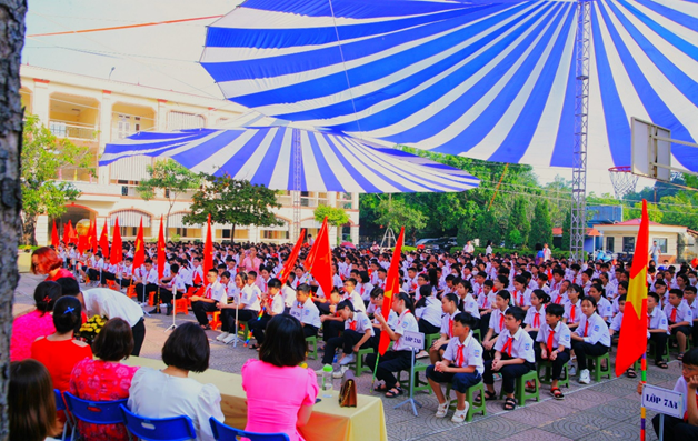 Tiếng trống khai trường đã vang lên giòn giã, âm vang và xúc động nơi sân trường, khép lại những ngày hè rực rỡ, mở ra năm học mới với biết bao dự định ấp ủ, mở ra những ngày tháng miệt mài dạy và học hăng say, nhiệt huyết. Trong ánh nắng thu xôn xao, niềm vui ngân vang trong từng ánh mắt, nụ cười reo vui của các em học sinh, trong từng ánh nhìn tự hào và hi vọng của thầy cô, cha mẹ. Tất cả làm nên một bản hoà ca tuyệt diệu đánh dấu sự khởi đầu cho một năm học 2024-2025 hứa hẹn nhiều bứt phá với những thành tựu rực rỡ. Buổi lễ khai giảng không chỉ là ngày hội của tri thức mà còn là dịp để sẻ chia yêu thương. Trong không khí ấm áp, nhà trường đã tổ chức trao tặng những phần quà ý nghĩa cho các em học sinh có hoàn cảnh khó khăn, như một lời động viên, khích lệ các em tiếp tục cố gắng trên con đường học tập. Những món quà tuy nhỏ bé nhưng chứa đựng tình cảm lớn lao, giúp các em cảm nhận được sự quan tâm của thầy cô, bạn bè và xã hội, tiếp thêm động lực để vượt qua khó khăn, vươn lên trong cuộc sống.