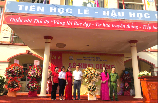 Về phía nhà trường có cô giáo Nguyễn Thị Bạch Loan – Bí thư chi bộ, hiệu trưởng nhà trường, cô giáo Trịnh Thị Việt Anh – Phó bí thư chi bộ, phó hiệu trưởng cùng các thầy giáo, cô giáo, và các nhân viên trong nhà trường. Bên cạnh đó, không thể không kể đến sự góp mặt của 1365 em học sinh các khối 6,7,8 9 và sự hiện diện của các bậc PHHS cùng với các đơn vị liên kết với nhà trường. Mở đầu buổi lễ là nghi thức đón các em học sinh khối lớp 6 được diễn ra tưng bừng trong niềm mong đợi của tất cả mọi người. Bước chân vào ngôi trường THCS chắc hẳn các em nhỏ đều thấy mình đã trưởng thành, tâm trạng háo hức xen lẫn chút bỡ ngỡ, hồi hộp. Bởi ngày hôm nay các em được các thầy cô giáo, các anh chị lớp lớn chào đón, chính thức trở thành thành viên của đại gia đình THCS Kiến Hưng.