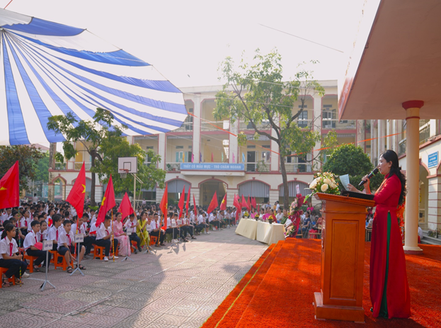 Tại Lễ khai giảng, cô giáo Trịnh Thị Việt Anh - Phó Hiệu trưởng đã thay mặt nhà trường đọc thư của Chủ tịch nước gửi ngành giáo dục. Trong đó, đồng chí Tô Lâm- Tổng Bí thư, Chủ tịch nước đã gửi gắm những tình cảm thân thiết và lời chúc tốt đẹp; biểu dương những nỗ lực của thầy, trò cả nước; biểu dương những nỗ lực, cố gắng và kết quả của toàn ngành giáo dục, sự đồng hành, hỗ trợ của các bậc phụ huynh trong thời gian qua. Tổng Bí thư, Chủ tịch nước nhấn mạnh: “Giáo dục và đào tạo cần tiếp tục hướng đến phát triển con người và hạnh phúc của con người, phát huy tối đa nhân tố con người, lấy con người làm trung tâm, chủ thể, nguồn lực, mục tiêu của sự phát triển, tạo nền tảng cho việc thực hiện mục tiêu dân giàu, nước mạnh, dân chủ, công bằng, văn minh”. Đồng thời, đồng chí “tin tưởng các em học sinh, sinh viên, học viên sẽ nỗ lực học tập, tu dưỡng để xây dựng đất nước ngày càng phồn vinh, hạnh phúc” và “mong các thầy giáo, cô giáo, cán bộ quản lý, người lao động ngành Giáo dục luôn tâm huyết, yêu nghề, sáng tạo, vượt qua mọi khó khăn, đóng góp nhiều hơn nữa cho sự nghiệp cao quý của mình.
